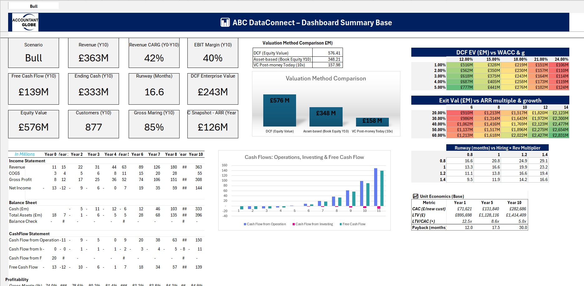 • Interactive Dashboard: Visualise enterprise value, cash generation, and revenue trends in real time